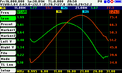 КСВ по входу - зелёный трек, шкала слева - за 1.82 не выходит.  lllol