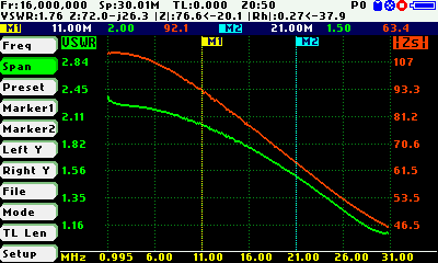 Вот АЧХ предварительного усилителя через НОРМАЛЬНУЮ качалку - выходное сопротивление 50 Ом, входное - те же 50 Ом. Прибор скалиброван по уровню -20 дБ. Выход прибора на входе драйвера, вход (50 Ом, напомню) - пераллельно 10 Ом в нагрузке драйвера во вторичке.